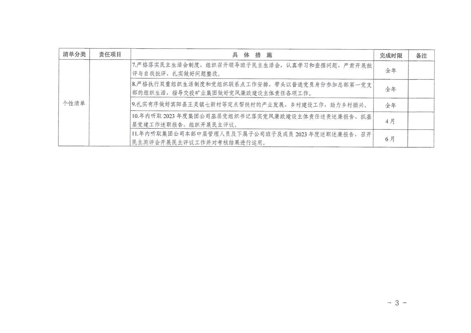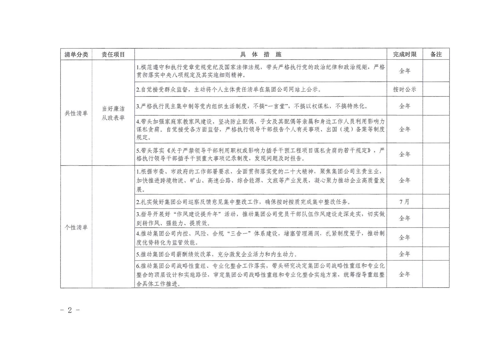 領導班子其他成員2024年度黨風廉政建設“一崗雙責”清單(一)