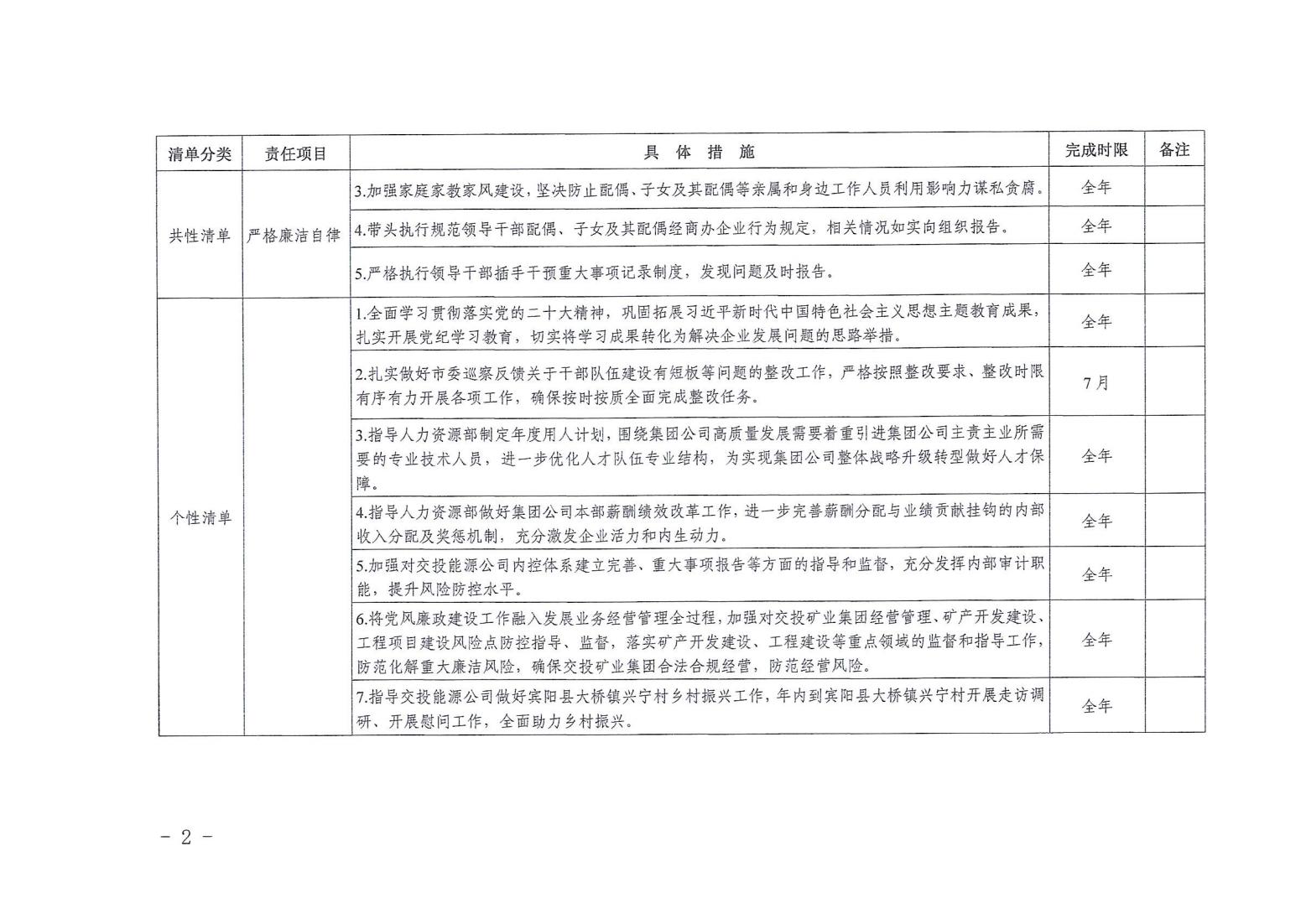 領導班子其他成員2024年度黨風廉政建設“一崗雙責”清單(四)