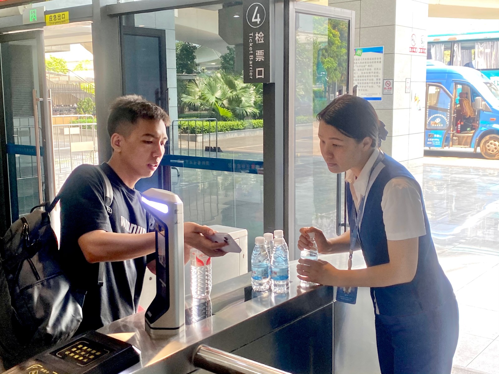 售票員微笑面對(duì)乘客,耐心為旅客答疑解惑,幫助旅客提供最佳出行選擇;“三品”檢查員認(rèn)真做到“逢包必檢、逢液必查”,保障旅客安全出行;檢票員嚴(yán)格查驗(yàn)車輛及駕駛員證件,熱情招呼旅客檢票乘車,為來往的旅客做好乘車引導(dǎo)服務(wù);安全檢驗(yàn)員認(rèn)真做好車輛發(fā)車前安全設(shè)施設(shè)備檢查及發(fā)車前安全告知工作。