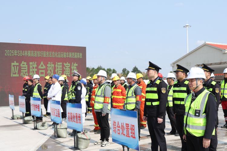 為全面提升林橫高速對(duì)服務(wù)區(qū)危化品運(yùn)輸泄漏突發(fā)事故的應(yīng)急處置能力,加強(qiáng)“一路多方”各部門(mén)間的協(xié)同配合,保障過(guò)往司乘生命財(cái)產(chǎn)安全,3月18日,南寧交投集團(tuán)下屬南寧高速公司聯(lián)合賓陽(yáng)縣應(yīng)急局、生態(tài)局、交警、消防救援大隊(duì)、衛(wèi)生局及區(qū)執(zhí)法局二支隊(duì)四大隊(duì)、六大隊(duì)等單位,在林橫高速鄒圩服務(wù)區(qū)開(kāi)展?;愤\(yùn)輸泄漏突發(fā)事故應(yīng)急聯(lián)合救援演練。